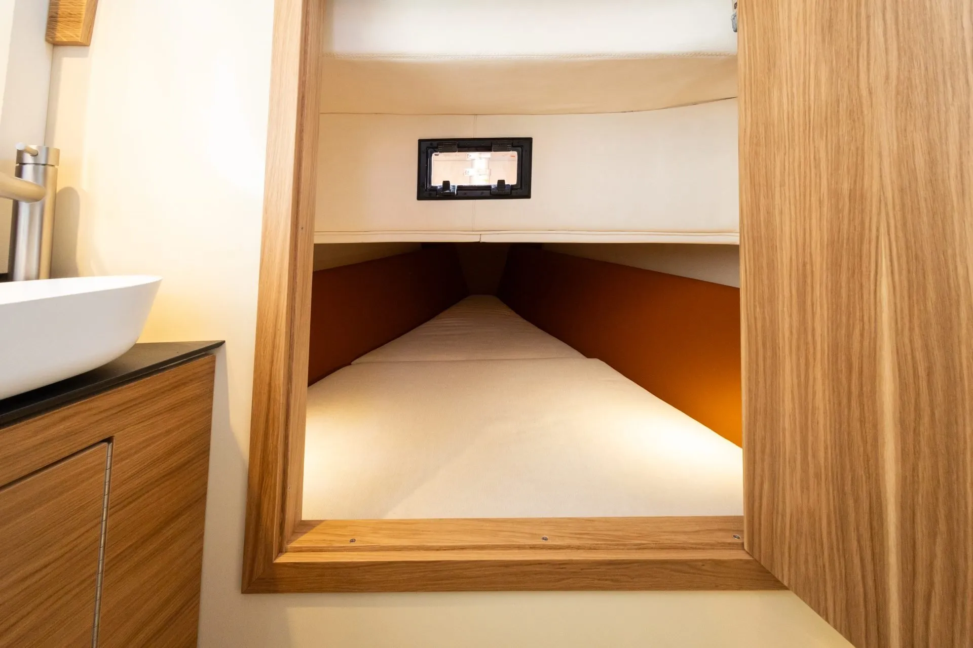 Konfiguracija notranjega motorja daje čolnu čistejši, bolj klasičen videz, hkrati pa zagotavlja stabilno in udobno križarjenje.