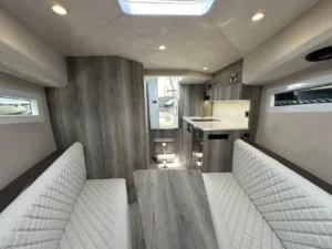 Kabina ima sedežno površino za 6 oseb, ki se lahko spremeni v posteljo za 2 osebi,