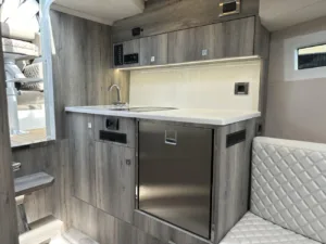 Dobro premišljeni detajli, kot so pametni odlagalni prostori, prispevajo k enostavnosti in funkcionalnosti čolna.