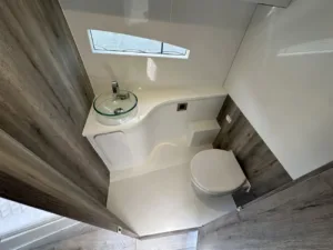 Za udobje in zasebnost je čoln opremljen z ločenim straniščem.